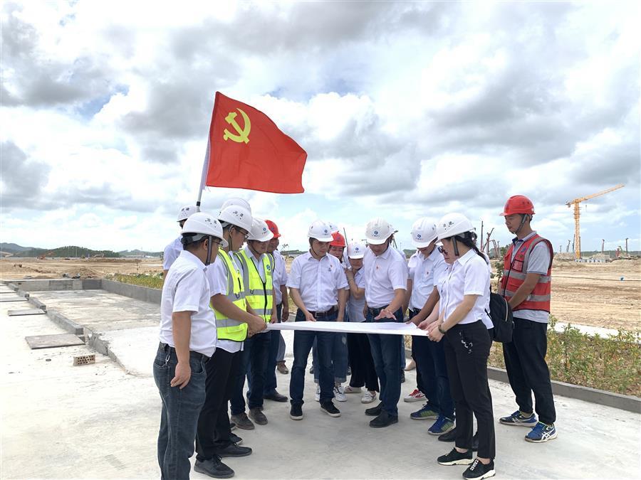 黨員帶領項目管理人員研究圖紙