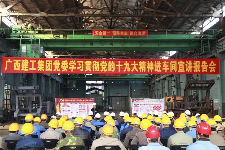12月6日下午,廣西建工集團(tuán)黨委委員、副總經(jīng)理侯立林到冶建公司壓力容器制造廠鉚焊車間進(jìn)行學(xué)習(xí)貫徹黨的十九大精神進(jìn)工地、進(jìn)車間宣講報(bào)告。