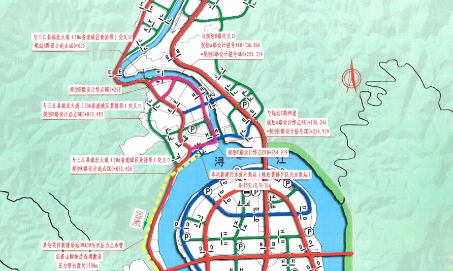 該項(xiàng)目位于柳州市三江侗族自治縣黃排片區(qū),結(jié)合規(guī)劃區(qū)發(fā)展的功能需求,圍繞著三江縣新三江中學(xué)學(xué)校地塊,規(guī)劃形成“一帶、一環(huán)、四心、五軸、七片”的城市結(jié)構(gòu)體系與“山、水、城、田、人”相融的組團(tuán)城市格局。“一帶”指自東向西貫穿城區(qū)的潯江風(fēng)情帶,連接縣城多個(gè)片區(qū);“一環(huán)”是由潯江大道-侗鄉(xiāng)大道-河西老城西環(huán)線(xiàn)-宜陽(yáng)大道構(gòu)成的城市環(huán)線(xiàn);“四心”分別是指潯江半島行政文體中心、河?xùn)|侗鄉(xiāng)民族文化中心、大洲島旅游活動(dòng)中心和火車(chē)南站客運(yùn)樞紐中心;“五軸”分別是指連接到城市環(huán)線(xiàn)的桂三高速公路連接線(xiàn)、209 國(guó)道周坪段、321 國(guó)道周坪段、龍吉大道和三柳高速公路程村連接線(xiàn);“七片”則分別是指黃排片區(qū)、河西老城片區(qū)、河?xùn)|新城片區(qū)(含潯江半島)、周坪片區(qū)、大洲島片區(qū)、龍吉片區(qū)和火車(chē)南站片區(qū)。