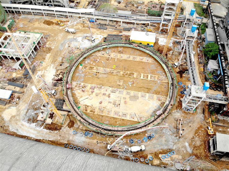 “開始澆筑!”3月15日下午2點(diǎn)40分,隨著魚峰水泥技改項(xiàng)目總負(fù)責(zé)人的一聲令下,4臺混凝土泵車和混凝土攪拌車準(zhǔn)時就位,4臺天泵同時啟動澆筑。這標(biāo)志著項(xiàng)目熟料庫的筒體滑膜施工正式啟動,并以每小時10厘米的速度向上滑升。項(xiàng)目部開足馬力、鉚足干勁,迅速掀起“奮戰(zhàn)一季度”新一輪項(xiàng)目建設(shè)高潮。