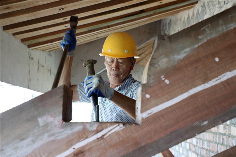 “這組斗栱有7噸重,這是我在柳州安裝的最大的斗栱。”9月26日,在第六分公司承建的北部生態(tài)新區(qū)濕地公園項目湖心閣安裝斗栱的師傅說,像這樣大的斗栱要安裝12組,另外,外立面和連廊還有76組斗栱需要安裝。