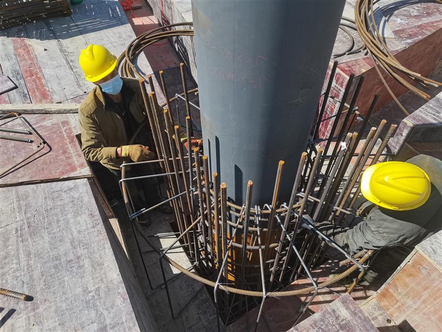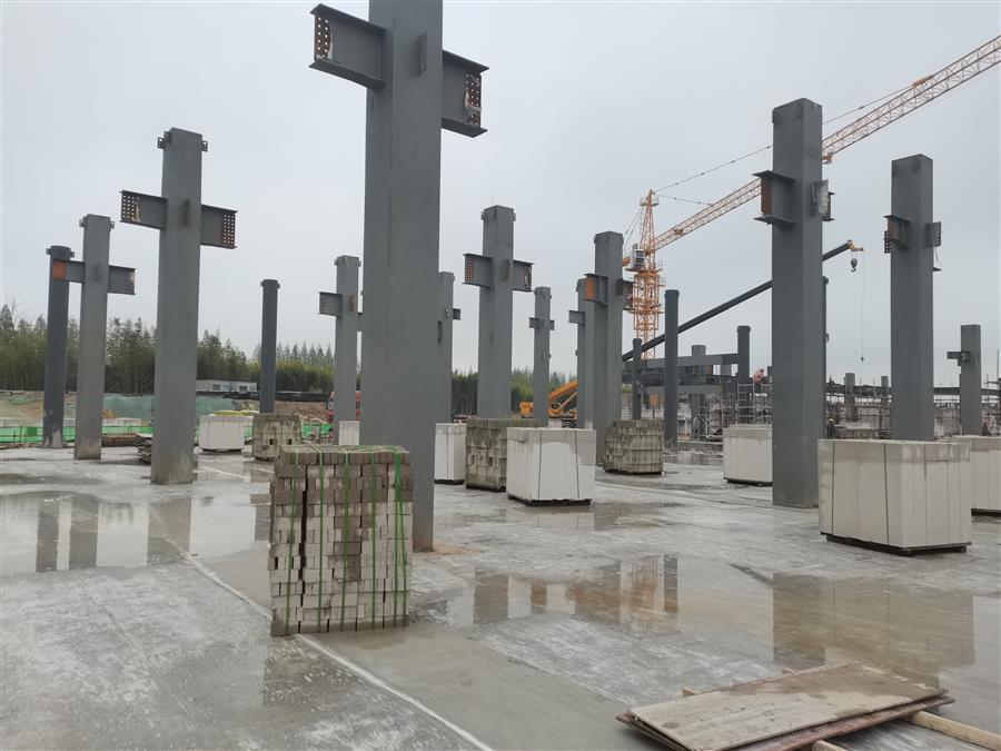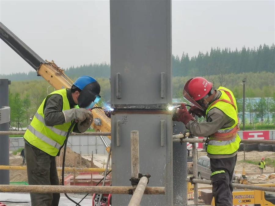 項目所在地受疫情影響較大,為統(tǒng)籌抓好項目疫情防控、安全生產(chǎn)、施工進度等工作,項目部嚴格落實疫情常態(tài)化防控措施,做好日常測體溫、消毒等工作,并對項目進行統(tǒng)籌規(guī)劃,根據(jù)“白+黑”“晴+雨”的天氣情況,合理安排相應的施工任務,同時加強吊裝機械設備的排班策劃力度,合理安排穿插作業(yè),確保工程進度如期完成。經(jīng)過兩個月的施工,目前項目正在進行第一層鋼梁安裝焊接和砌體結構砌筑、二層鋼柱吊裝安裝等工序。