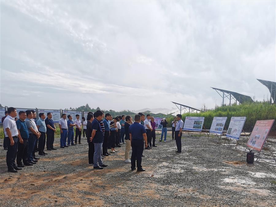 7月6日,寧明縣重大項目年中走會考察組到冶建公司基礎(chǔ)分公司承建的寧明縣寨安光伏項目光伏區(qū)建筑與安裝工程項目考察。寧明縣委書記王耀雷、縣長孫金水及縣領(lǐng)導班子成員參加。