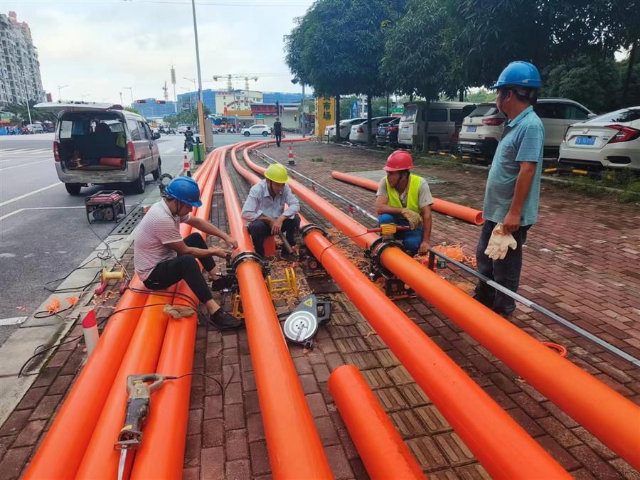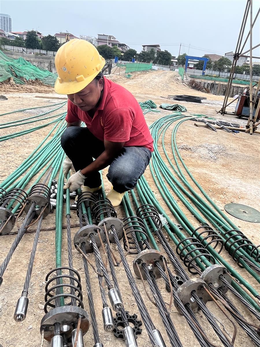貴港市棚戶區(qū)改造(三期)白凹窩安置區(qū)項目B2標段項目,工人正在進行壓力型預應力抗浮錨桿加工。