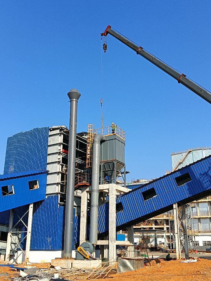 融安縣生活垃圾焚燒發(fā)電項目工程總承包項目,工人正在進行汽機間屋面鋼筋網(wǎng)綁扎。