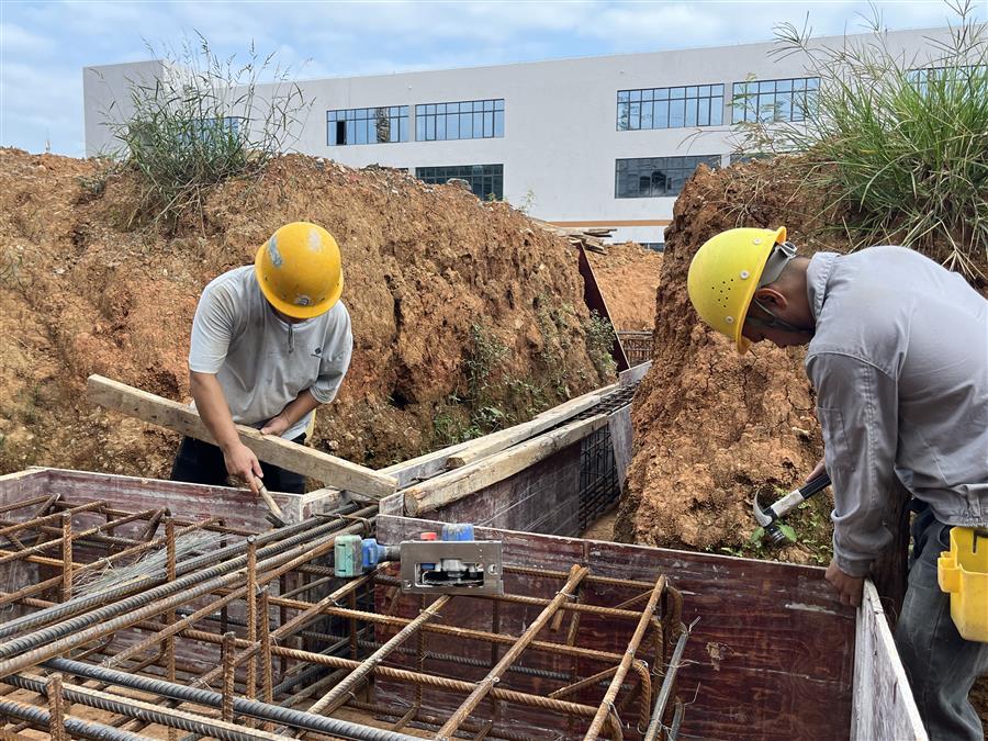 鹿寨智慧林業(yè)零碳循環(huán)產(chǎn)業(yè)園項目,管理人員正在進行鋼筋套筒扭矩測試。