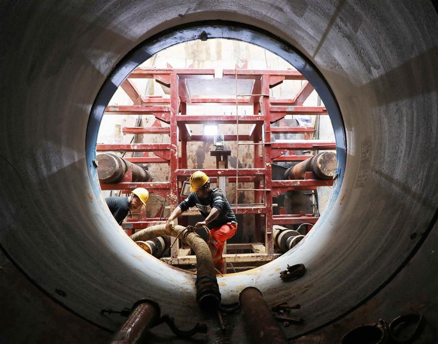 項(xiàng)目施工過程中,為了保證施工質(zhì)量和建設(shè)效率以及減少施工給附近居民的影響,項(xiàng)目部采用巖石頂管機(jī)施工的方式開挖干渠,此舉在柳州實(shí)屬首次。