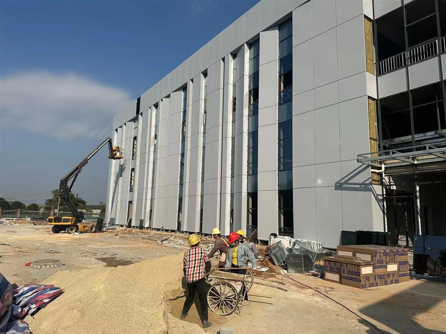 目前,項目1#聯合廠房外立面均已完成,室內消防、鋼結構等均已安裝完畢,暖通以及水電工程、室內燈具、器具等正在安裝中。庫房、門衛(wèi)室主體結構已完成、室內燈具、器具等正在安裝中。
