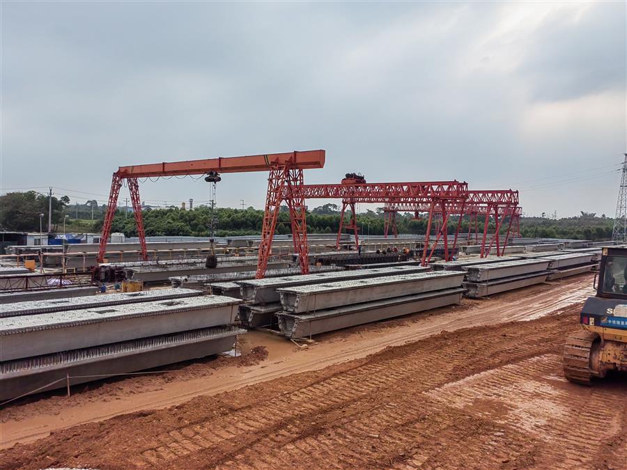 在施工現(xiàn)場,20多臺大型設(shè)備在不同時段連續(xù)配合作業(yè),運輸車輛有序進行運土填筑路基、材料進出場,100多名項目管理人員及工人分為預(yù)制梁場、樁基施工、橋梁下部結(jié)構(gòu)等班組全線鋪開,在各個作業(yè)點上有條不紊地開展施工作業(yè)。