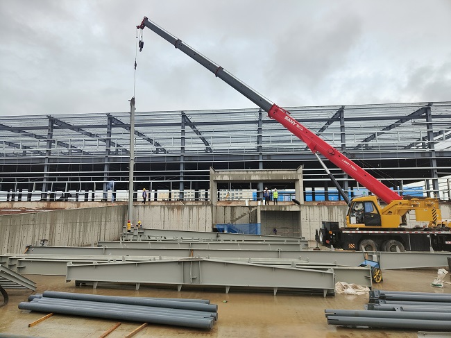 7月31日上午10點18分,冶建公司第四分公司承建的內蒙古呼和浩特市武川縣10萬噸冷鏈物流新建項目2#冷庫首個鋼結構緩緩起吊、精準就位。首吊的圓滿成功,標志著項目2#冷庫全面進入鋼結構施工階段。