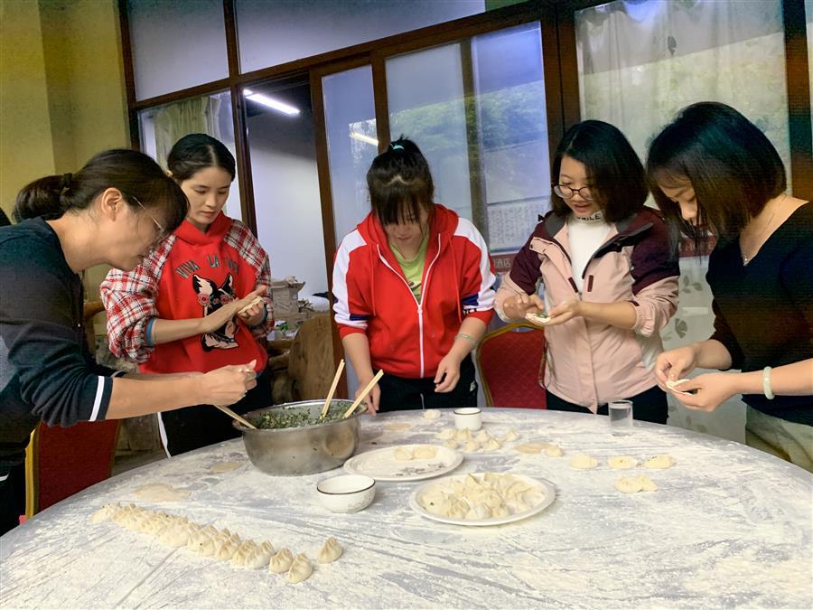 從搟面皮、包餃子、洗菜切菜到后臺大廚掌勺,職工們分工有序、迅速進入狀態(tài)。在談笑中有條不紊地端出了一盤盤色香味俱全的菜肴,一同開心地分享自己的勞動成果。