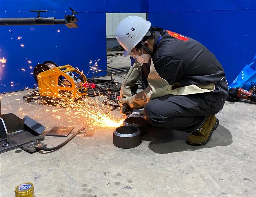 雖然比賽現(xiàn)場下著小雨,但是比賽氛圍依舊十分熱烈,選手們熟練地操作著各類工具,按照施工工序出色地完成了鋼筋綁扎、磚塊砌筑、材料焊接等比賽項(xiàng)目。