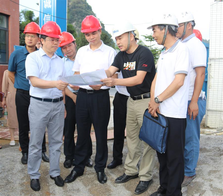 6月24日,河池市委常委、宣傳部部長(zhǎng)、副市長(zhǎng)陸海生到桂金分公司承建的河池·澳門(mén)國(guó)際城雙語(yǔ)幼兒園工程調(diào)研。