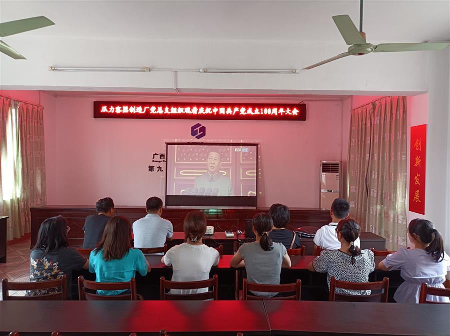 公司黨委組織員工收看慶祝中國共產黨成立100周年大會直播。公司領導班子成員覃振華、蒙勝益、賴海標、廖立波、唐峰、阮仁勝、周善學、何勇,代財務總監(jiān)李芝霞,副調研員劉國江以及各基層黨組織黨員以集中或個人收看方式觀看大會直播。