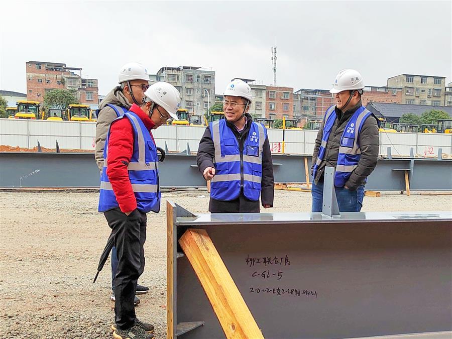 廖立波深入項目施工現(xiàn)場,詳細(xì)了解項目施工進(jìn)度、質(zhì)量安全管理、鋼結(jié)構(gòu)安裝、機(jī)械材料設(shè)備等情況。廖立波要求,項目部要統(tǒng)籌做好施工計劃,根據(jù)整體工期安排,合理分解階段性目標(biāo),精準(zhǔn)設(shè)計施工方案,掛圖作戰(zhàn),提高整體施工效率;要毫不松懈抓好安全生產(chǎn),健全安全管理體系,常態(tài)化開展安全警示教育,提高安全管理水平。廖立波強(qiáng)調(diào),要全面加強(qiáng)質(zhì)量管理,認(rèn)真做好創(chuàng)優(yōu)前期工作,落實質(zhì)量管理責(zé)任,將質(zhì)量管控貫穿項目建設(shè)全過程;要堅持樣板引路,嚴(yán)格落實標(biāo)準(zhǔn)規(guī)范,抓好基礎(chǔ)技術(shù)管理、原材料質(zhì)量管控、項目檢驗和驗收,探索創(chuàng)新施工工藝,提高施工水平,確保一次成優(yōu),保障工程質(zhì)量整體過硬。