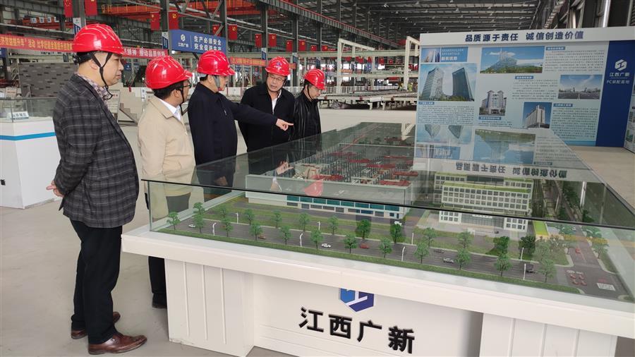 在江西廣新建筑產(chǎn)業(yè)有限公司,蒙勝益與江西廣新公司董事長、總經(jīng)理黃平等參觀裝配式建筑產(chǎn)業(yè)基地,了解江西廣新公司裝配式產(chǎn)品生產(chǎn)、工藝流程等情況。在交流座談中,雙方達(dá)成共識,希望能共同加強(qiáng)溝通交流,創(chuàng)新合作模式,實(shí)現(xiàn)雙贏。