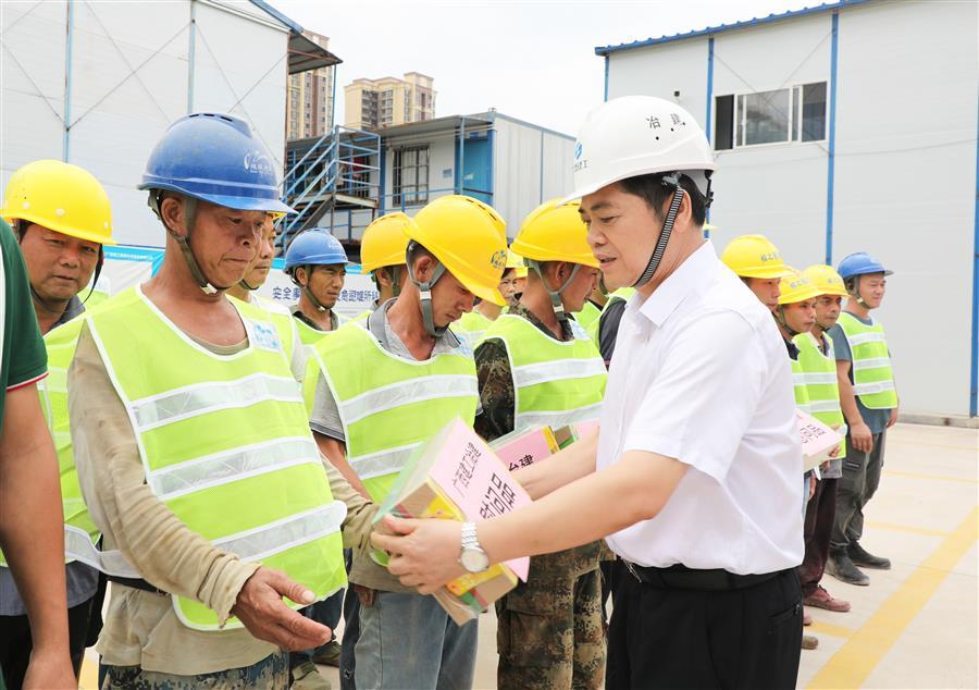 慰問中,蒙勝益向高溫中堅守在項目一線的建設者們表示感謝,并詳細了解了分公司、項目部防暑降溫措施落實情況。他表示,當前天氣酷熱難耐,在施工過程中要做好防暑降溫,身體感到不適應時要及時休息。分公司、項目部要認真做好高溫天氣施工方案,根據(jù)天氣情況制定施工計劃,避開高溫時段作業(yè),同時要抓好工人的安全教育工作,備足防暑降溫物資,做好安全管理和后勤保障工作,保障工人身體健康,確保項目安全有序推進。