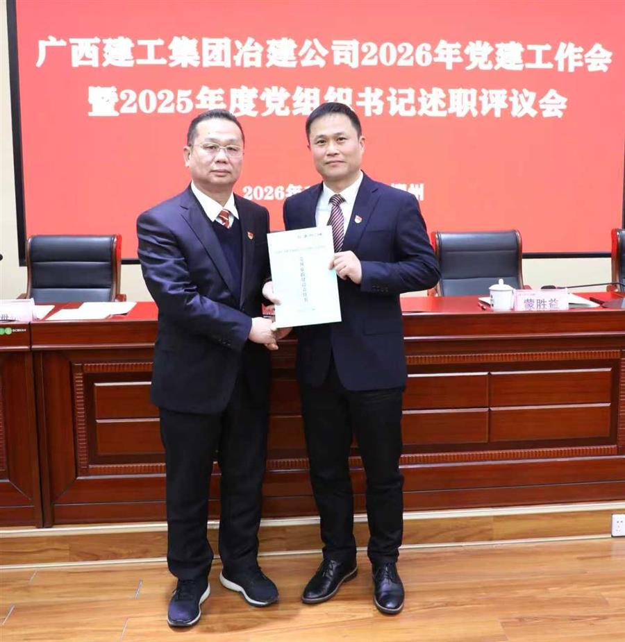 1月23日,冶建公司2026年黨建工作會暨2025年度黨組織書記述職評議會在第二會議室召開。公司黨委書記、董事長覃振華參加并講話,黨委副書記、總經(jīng)理蒙勝益?zhèn)鬟_集團公司2026年黨建工作會暨2025年度黨組織書記述職評議會精神,黨委副書記、紀委書記、工會主席賴海標主持,領導班子成員廖立波、阮仁勝、韋克雪、葉益華參加。