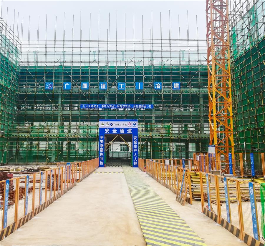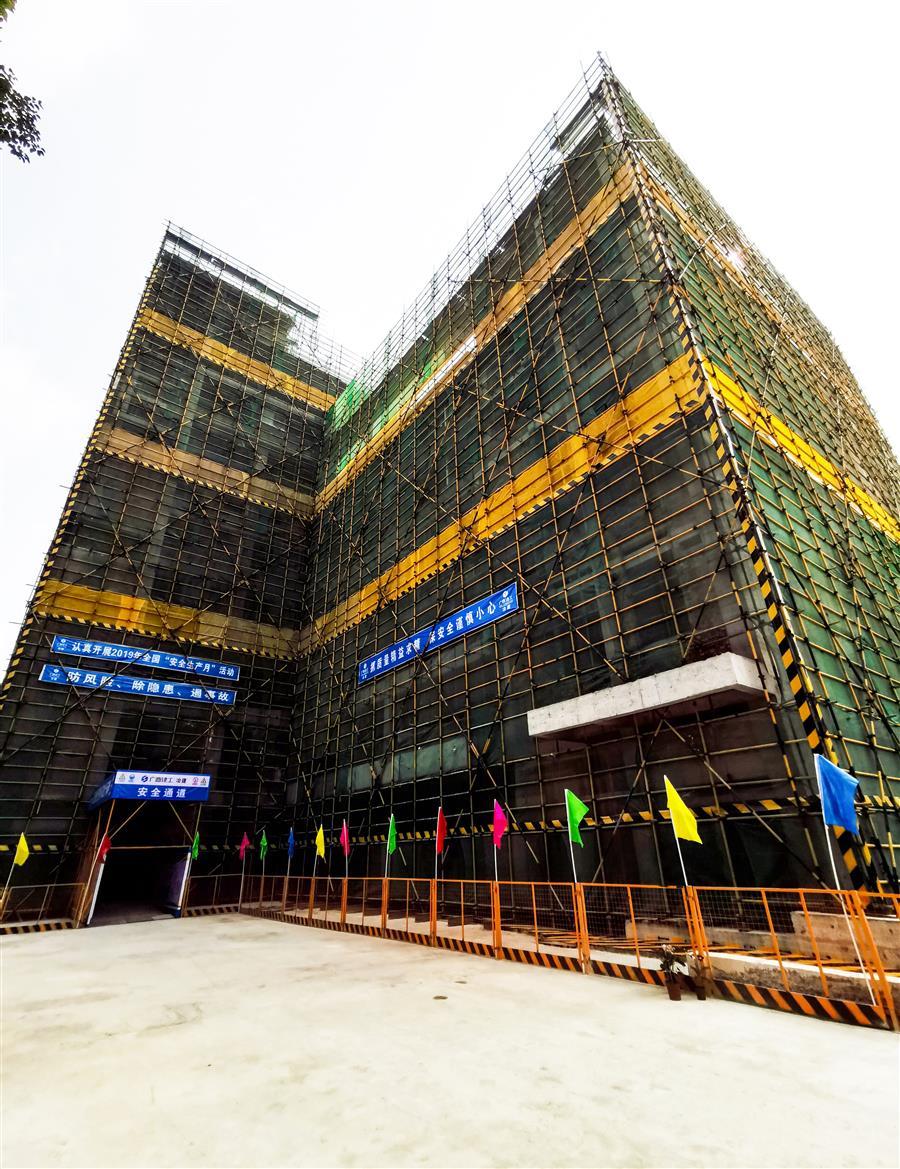 該項目由桂金分公司承建,總建筑面積14993.85平方米,包括1棟9層40.35米高的業(yè)務(wù)綜合樓和1層10.8米高的報告廳,以及大門、圍墻、供配電、給排水、道路及地面硬化、擋土墻、綠化、醫(yī)療氣體系統(tǒng)等附屬設(shè)施及電梯等設(shè)備購置。目前,項目已完成整體地下室及主樓1~5主體框架結(jié)構(gòu)施工,目前正在進行主樓6層內(nèi)架搭設(shè)。