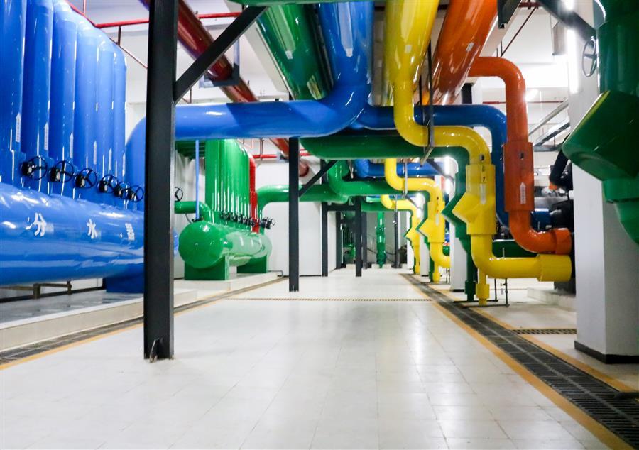 采用非金屬彩色復合保溫外護進行管道區(qū)分,接口處理平直、美觀。