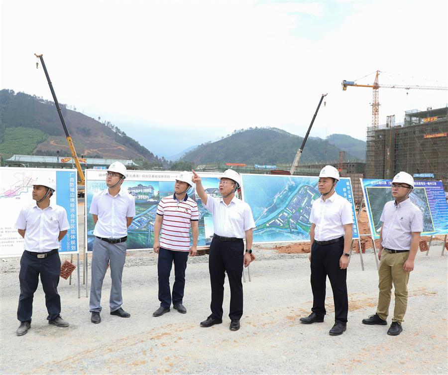 覃振華在峒中公路口岸(含里火通道)綜合區(qū)基礎(chǔ)設(shè)施項(xiàng)目指導(dǎo)工作