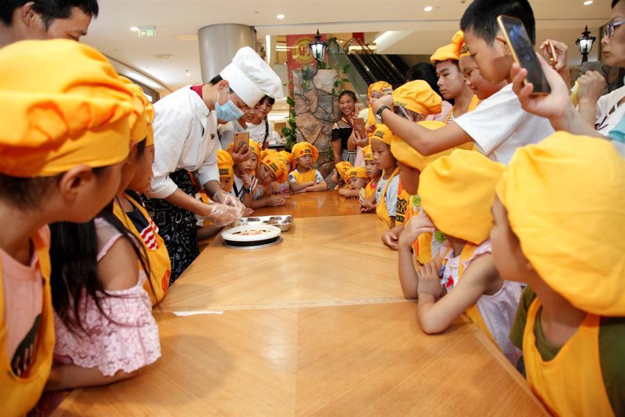 圖1:糕點(diǎn)師在為孩子們展示披薩制作過程
